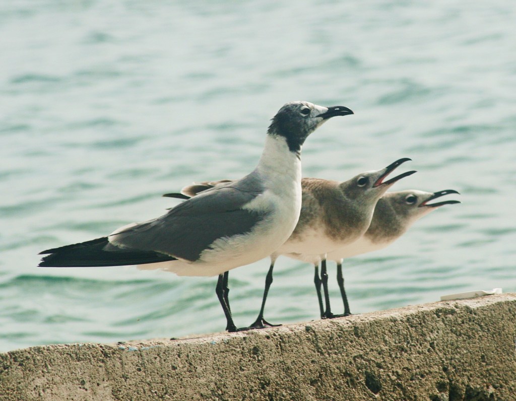 Nearby, a loud spectacle was occurring; something beneath the water’s surface had captured the attention of a multitude of white feathers. Upon closer examination, the culprits revealed their heads adorned with black velvety hoods, storm-colored wings, and formidable, curved burgundy-speckled beaks. Laughing Gulls, a medium-sized species called Leucophaeus atricilla, are the only gulls that breed in the Lesser Antilles. They are known for their distinct piercing call, which gives them their common name.