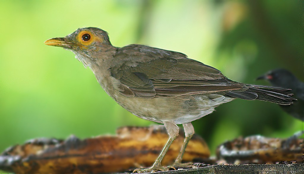 In Grenada, our local Spectacled Thrushes regularly visit our banana feeder and enjoy bathing in our bird baths. Interestingly, while most other bird species coexist harmoniously at our feeders, Spectacled Thrushes assert their dominance and do not allow other members of their species, except for their mates, to feed – becoming quite aggressive and nosy during these confrontations. Nevertheless, they coexist peacefully with other species and comfortably share space with tanagers, bananaquits, and mockingbirds while feeding.