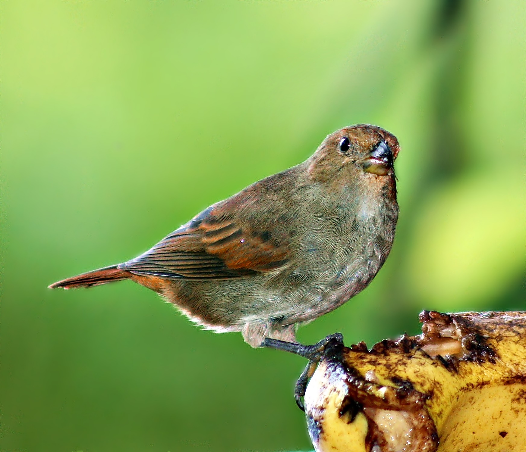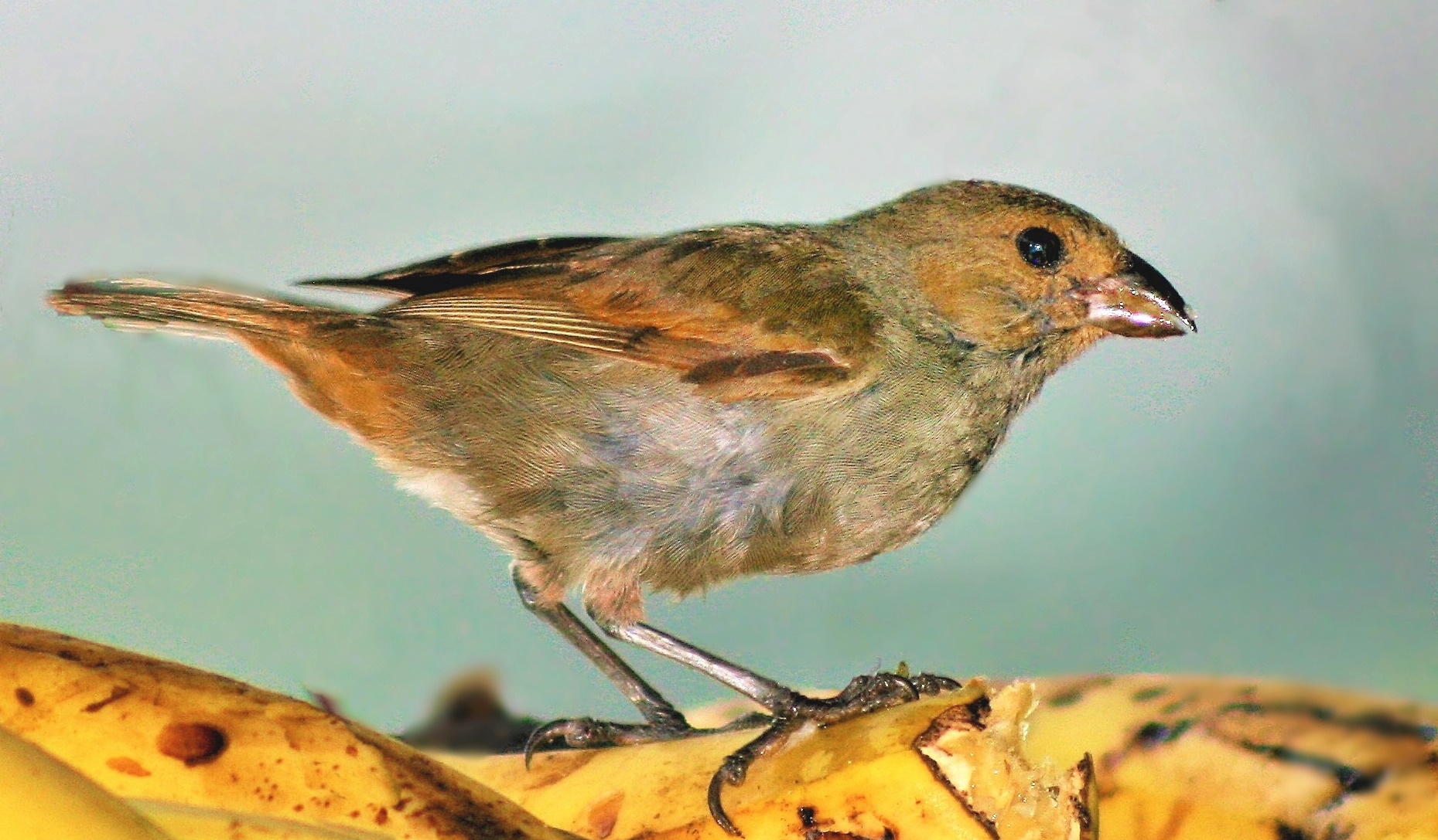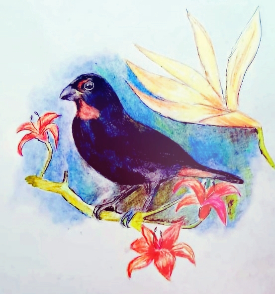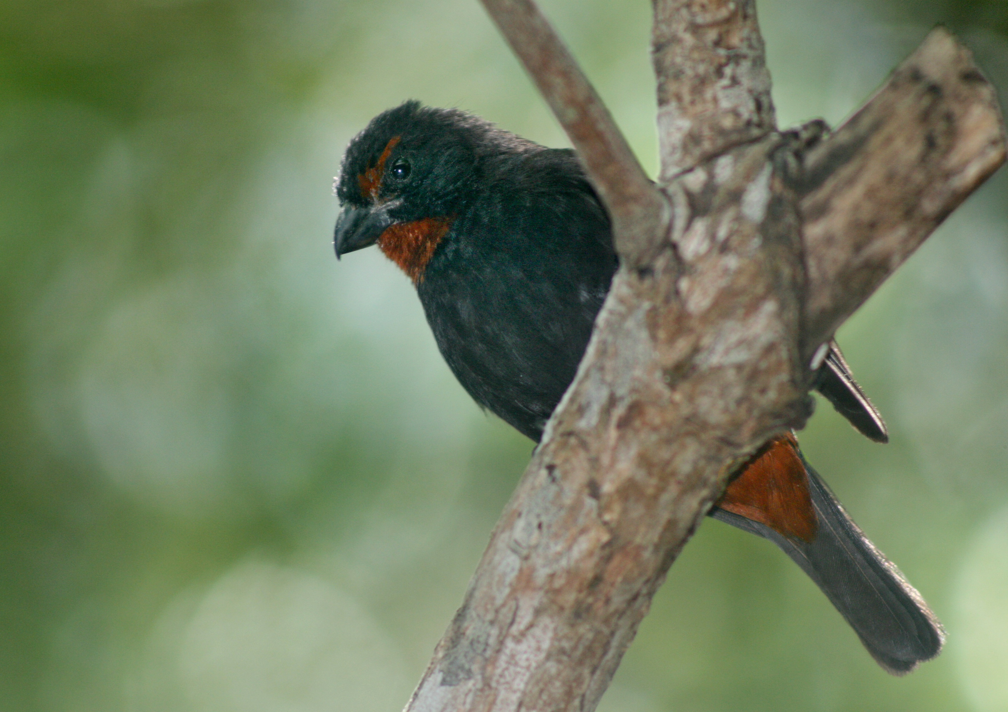 The Lesser Antillean Bullfinches are seed-eating birds in the Tanager family (Thraupidae). They are closely related to the Galapagos Finches, which helped inspire Darwin’s theory of natural selection.