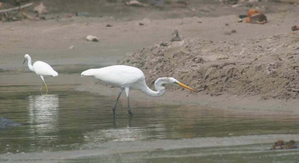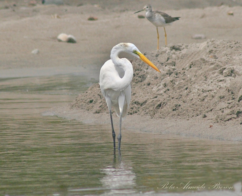 Standing at an imposing height of three feet, the Great Egret ranks second in size only to the Great Blue Heron. In specific areas of the Caribbean, it might be confused with the Great White Heron, a variant of the Great Blue Heron. However, the Great White Heron is identifiable by its shorter yellow legs, more robust neck, and slightly larger stature.