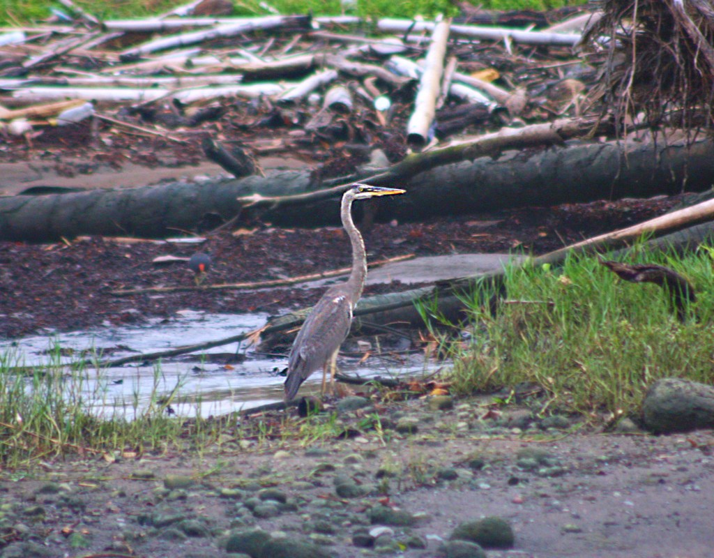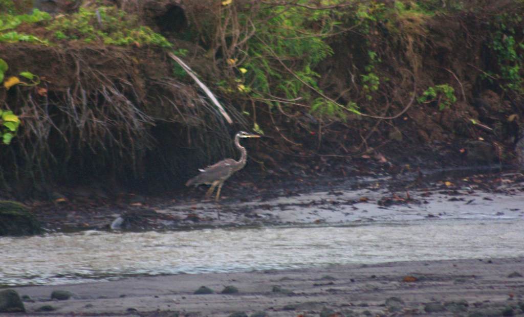 Fortunately, a few wetlands remain in Grenada where the Great Blue Heron and other migratory birds can still be seen. Although sightings of Great Blue Herons are rare in the southern Lesser Antilles, I had the opportunity to spot it for the second time in the wetlands of River Antoine, located on the northeast coast. On this occasion, I was equipped with my camera and promptly took a bunch of rather blurry photographs as the heron crossed the muddy riverbank, slowly disappearing into the twilight.