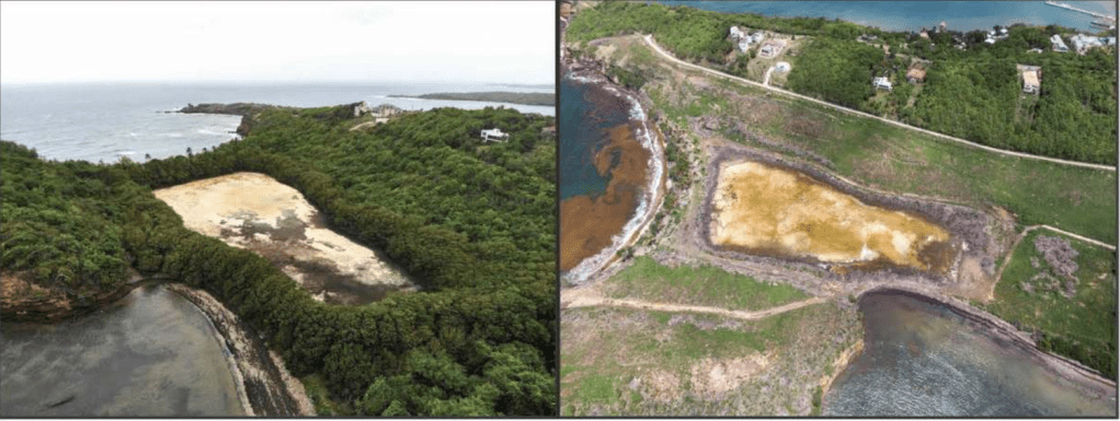 Before its destruction, La Sagesse featured a salt pond, a mangrove forest and a peaceful crescent-shaped beach with golden sand and tall palm trees, surrounded by lush vegetation that created a sense of seclusion. Its salt pond and mangrove forest were important bird sanctuaries in the southern Lesser Antilles, particularly for migratory birds. The calm waters and lush mangroves created habitats for diverse wildlife, with the roots of the white and buttonwood mangroves providing safe refuge for about 80 bird species.