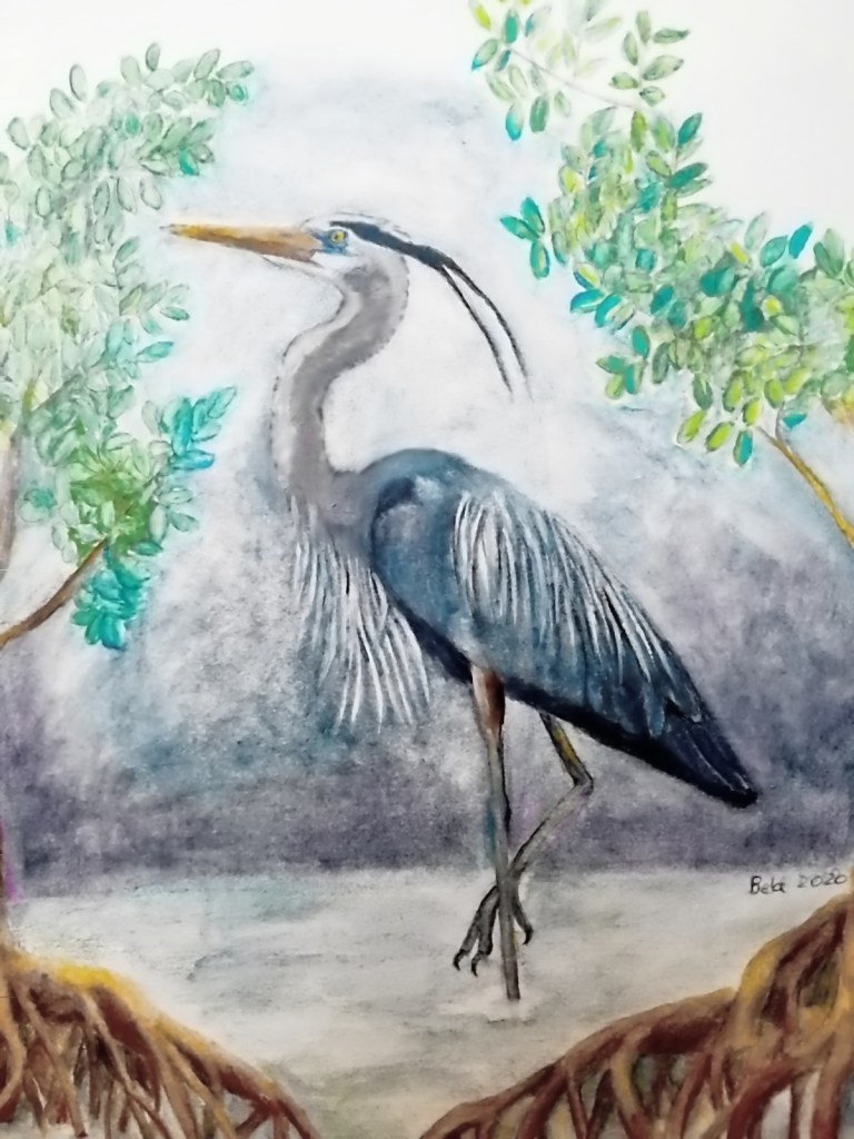 Indeed, it was at La Sagesse Salt Pond that I first saw the Great Blue Heron. Majestic and bright in the morning light, the heron stood picture-perfect, framed by the mangroves at the edge of the pond. Whenever I recall this moment, I now feel a profound sense of loss for something immense that has now been taken away.