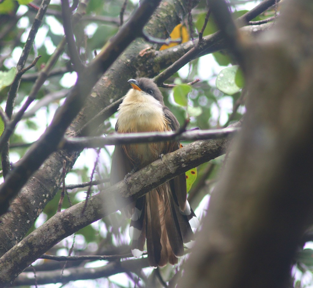 When I first heard the call of the Mangrove Cuckoo, I didn’t realize it was a bird; the sound was a deep ahrk-ahrk-ahrk-ahrk-ahrk that resembled a large frog laughing or burping. Sometimes it sounded like the frog was growling – kruk-kruk-kruk-kruk – with the quick notes blending together. It soon became clear that the strange croaking was actually a bird calling from the tree branches.
